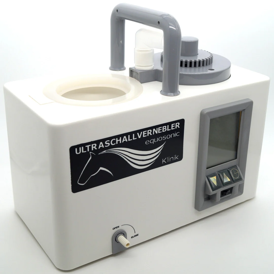 Unsere Ultraschallvernebler der Baureihe equosonic erreichen Tropfengrößen von 0,5 bis 5 µm, bei einer Leistung von bis zu 5,5 ml/min. Für normal große Pferde sind 4 ml/min völlig ausreichend. Sie erreichen sowohl die oberen als auch unteren Atemwege. Dies unterscheidet Ultraschallvernebler von den technisch einfacheren Kompressorverneblern, da der funktionale Hauptanteil der Atemwege mit seiner sehr großen Oberfläche (Bronchialsystem, Alveolarsystem der Lunge) voll erreicht wird.