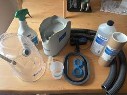 Die Maske mit integfierter Verneblereinheit ist absolut mobil.